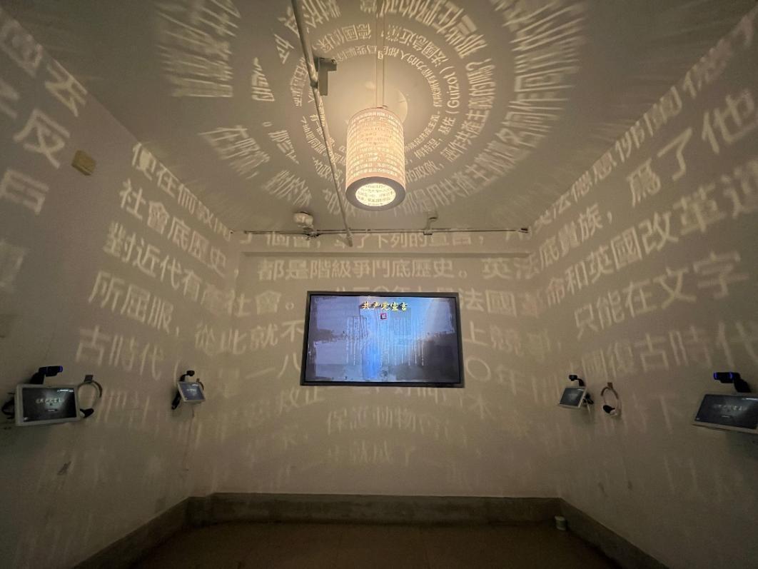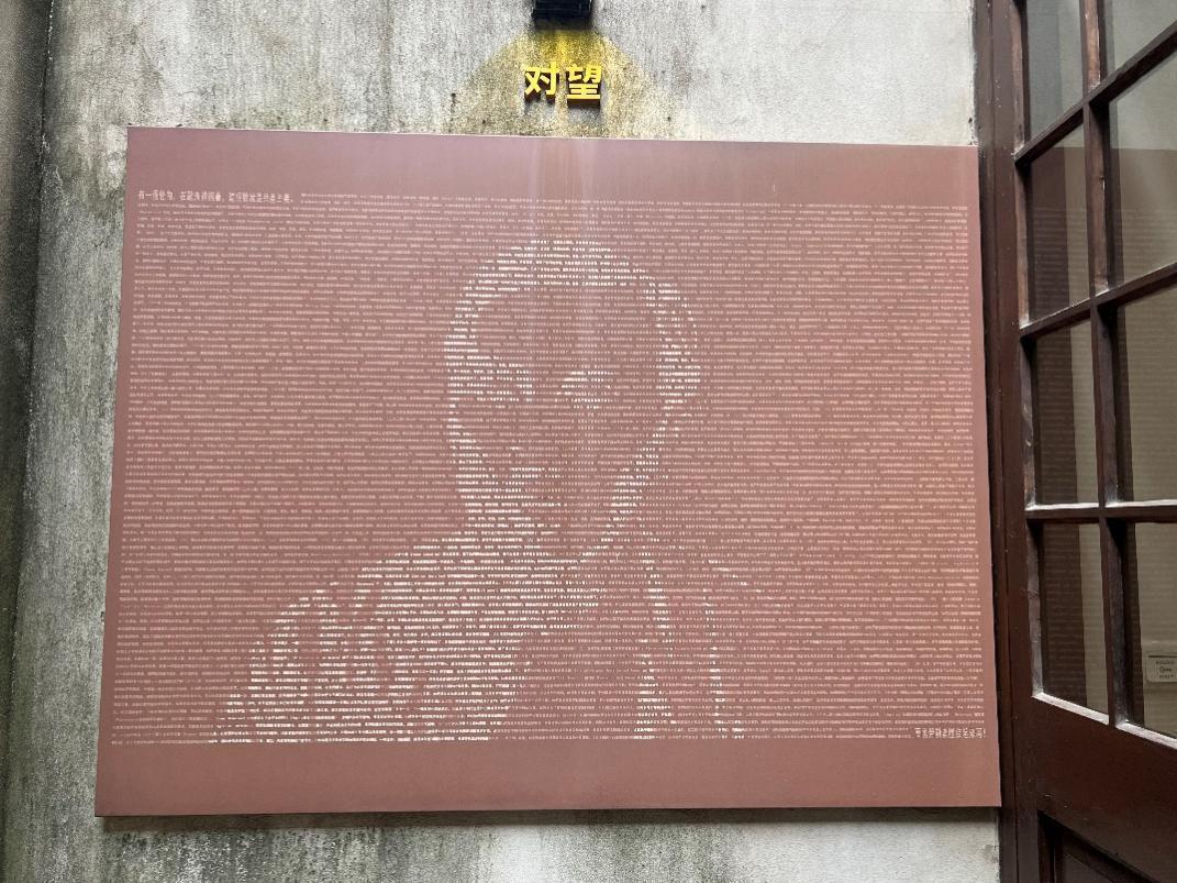 跨进又新印刷所旧址大门,两盏昏黄的射灯,照亮了《共产党宣言》,仿佛带领参观者穿越了时空的壁垒,体验历史的深邃。“有一个怪物,在欧洲徘徊着,这怪物就是共产主义。”随着陈望道翻译稿中的首句出炉,一场由马克思、恩格斯与陈望道之间的“对望”由此揭开序幕。